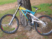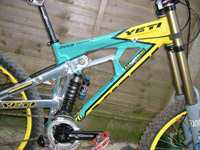 My name is Axel I'm living in Palma de Mallorca, balearic island, spain I send you some pictures of my yeti 303, number 41. equipped with: boxxer wc easton monkey dh carbon hope m4 with carbon caps shifter x9 derailleur sram 9.0 sl "joe" rims mavic 823 hubs hadley dh e-13 lrs chain guard, chain ring and stem chris king pink headset sdg i-beam carbon standpost sdg i- fly carbon saddle Shimano saint cranks titanium spring thanks and B.R Axel