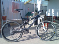 A friend of mine (former owner of an ASR-SL and current owner of an 575) convinced me to swap my Intense 5.5 for a Yeti... I was pretty much reluctant to do so as my Intense worked really nicely. This one became my choice, and I actually wonder how come it took me so long to decide. I shouldn't have... it's so great ! And light (11,560 g including pedals). As you can see the equipment is mainly based on an oldy but goody XTR base, including pedals, Fox RP3 + Fox 100RL + RaceFace stem + Thomson post + SLR XC saddle. Headset is in the hands of the King Chris and tires are left to Hutchinson. Riding is superb, handling and traction are great. So what I can ask for more ? Thank you again Mr Yeti !!! (and thanks to FMF !)
