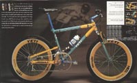 (Click to see more Lawwills’) Lawwill Downhill - 1996 - The first Generation of Mert Lawwill's Yeti Mountain Bikes, the Lawwill DH had 3" of rear Travel, Floating rear disc brake,FETS- Full energy transfer system, and was fitted with the trick looking Risse Terminator shock, The bike in the Brochure had a Front mech, AND a 60T Paragon Machine works chainring!