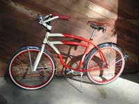 FACT:- The red and Cream one pictured- This is a rare Yeti cruiser, one of only a handfull built, and the only one personally autographed by John Parker. This frame was donated by Yeti to Trails 2000 (a trail advocacy group) for auction at a fund raiser. It is gorgeous aluminum construction, powdercoated red and cream, with Yeti built forks, stem, and bars. Built up with a Nexus 7 spd hub, Persons spring saddle, Yeti grips, bell+horn, Schwinn teardrop taillight and repro tires. This bike is a delight to ride, but has been ridden very little. Has never been off pavement. What an attention getter!