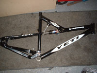 Lawwill DH-8 - 1999-2000-The Lawwill DH-8, now with a full 8" of travel, full bearings througout (18in total!), Floating brake arm remains, and even now, some bike companies are still catching onto this, the shock is a Rockshox Super Deluxe on the 99, and a Rockshox Super Deluxe with piggy back on the 2000 frames. some later frames, had YETI on the top swing arm. The floating brake arm was for Hayes fitment. Almost Identical to the Schwinn Lawwill's, but both were made in seperate places. although the Yeti came with a Schwinn manual!